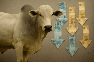 Imagem gerada por IA O mercado de boi gordo registrava uma semana de preços mais baixos para a arroba até o meio da semana. Em